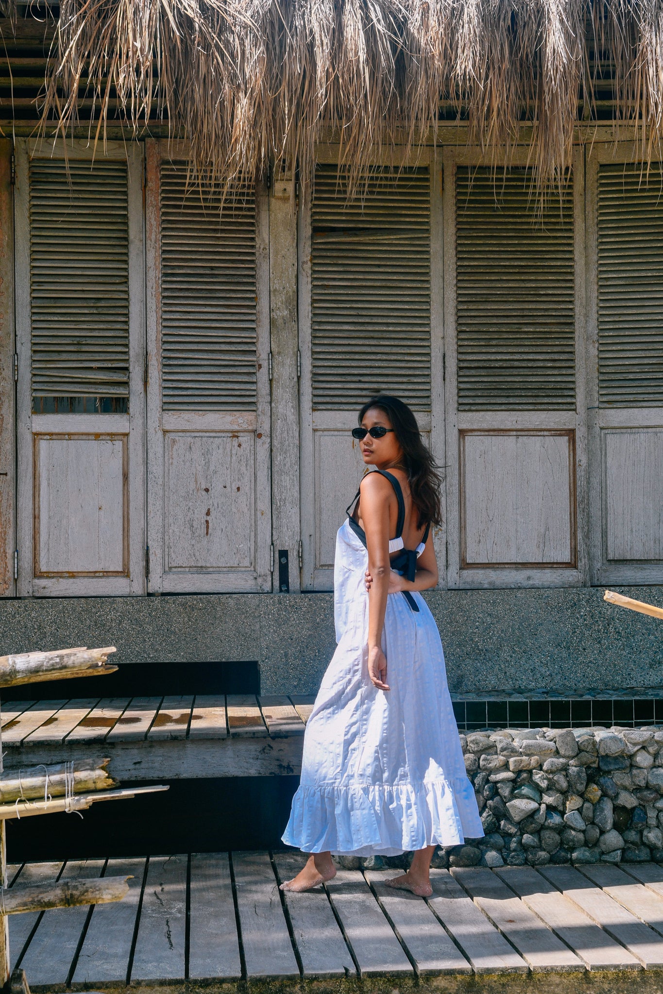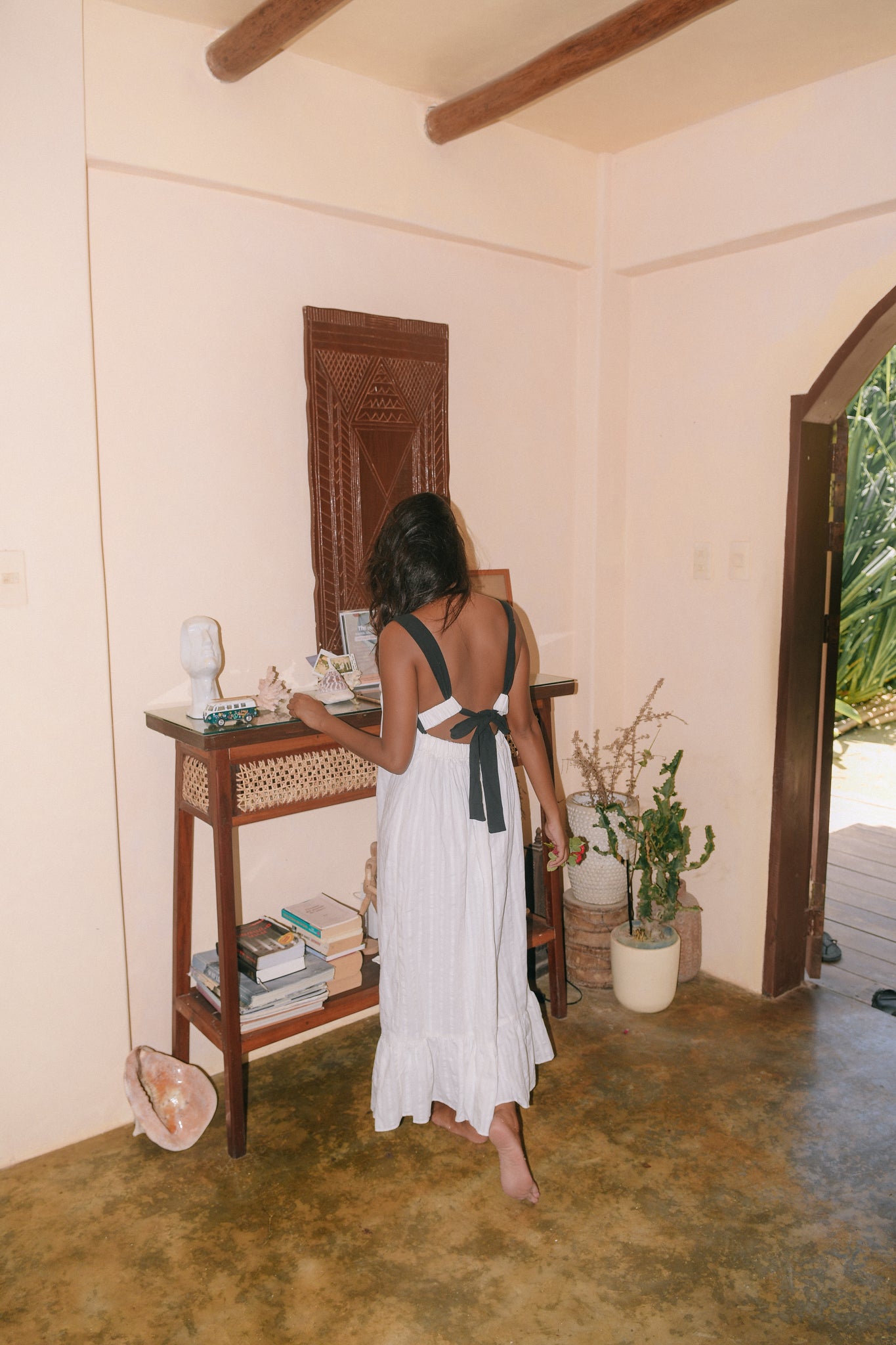 The star of the show. The Elvira Maxi Dress is a detailed Maxi dress with a stunning back detail of tie ribbons at the back.